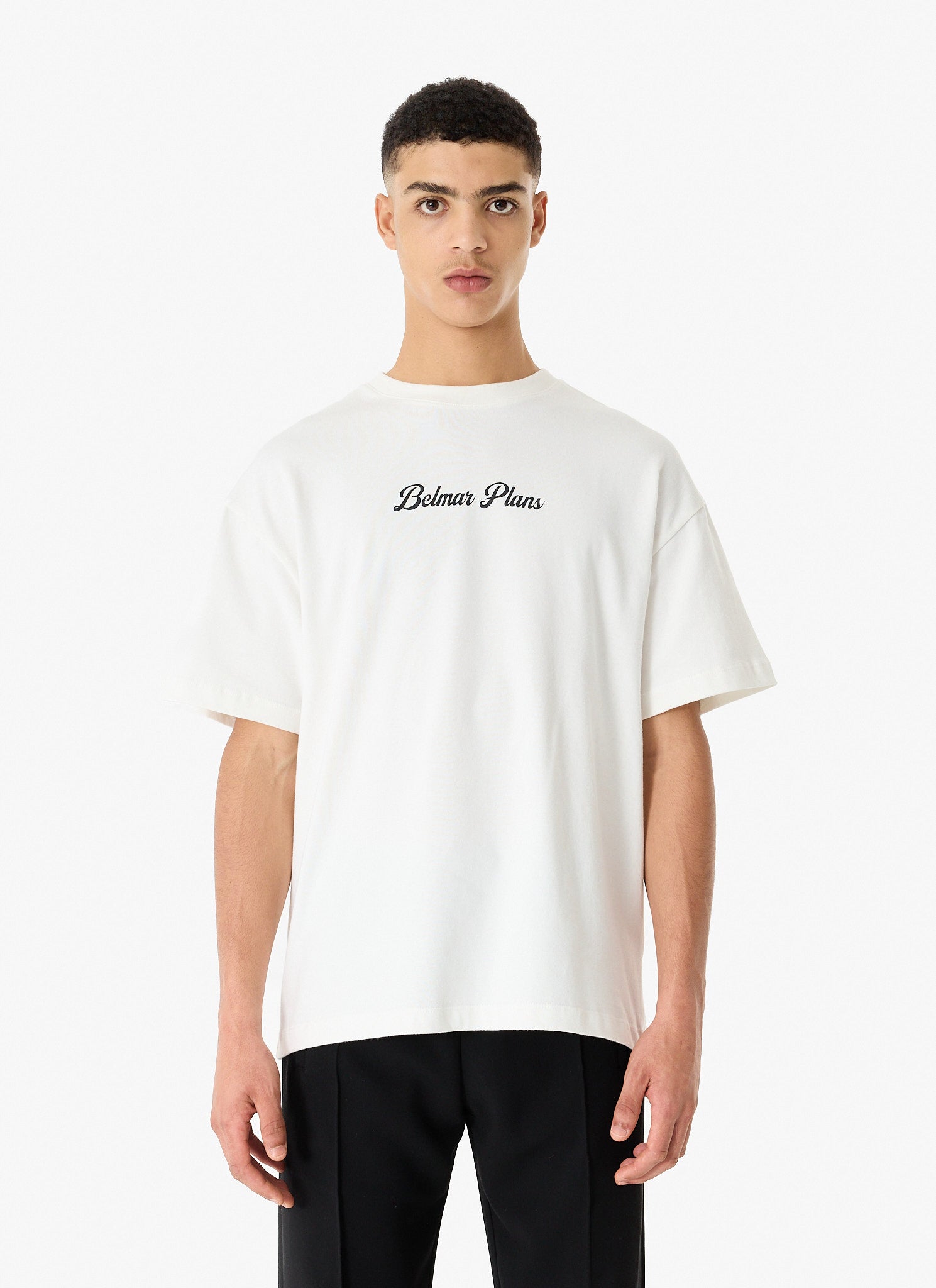 - Printed 'BELMAR PLANS' on the chest and curved on the back